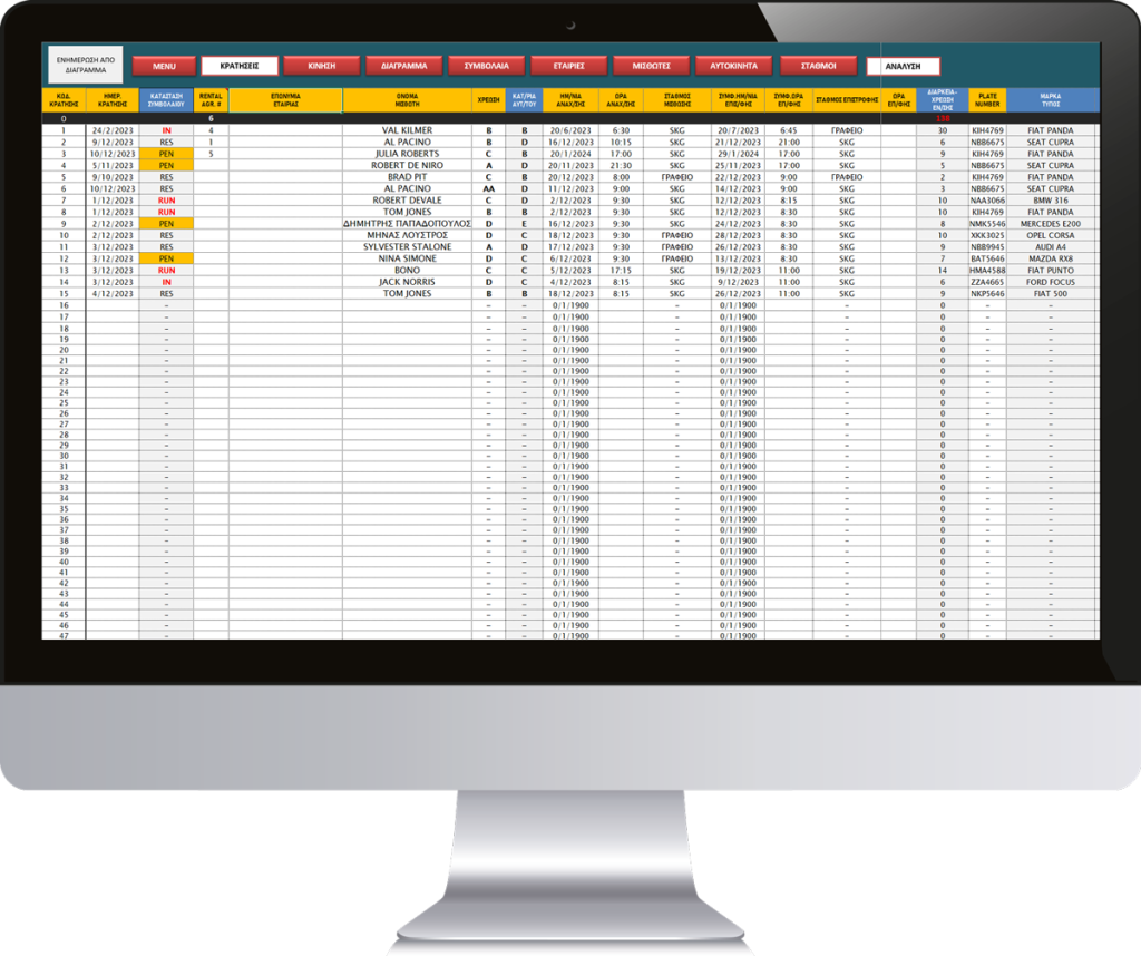 Μια μοναδική εφαρμογή φτιαγμένη με το πανίσχυρο Microsoft Excel! Ένα πραγματικό εργαλείο για κάθε μικρή ή μεσαία επιχείρηση ενοικίασης οχημάτων (Car, Motorbike, Van Rental etc.) Φτιαγμένο με μεράκι όπως και όλα τα έργα μας, προσφέρει ευελιξία στην καταχώρηση, διαχείριση και ενημέρωση που κάποιος βρίσκει σε ακριβότερα συστήματα!