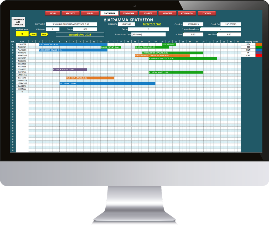 - Προβολή ώρας Έναρξης Κράτησης, Ονοματεπώνυμο μισθωτή και ώρας Επιστροφής Κράτησης όλα επάνω στην μπάρα της κράτησης.