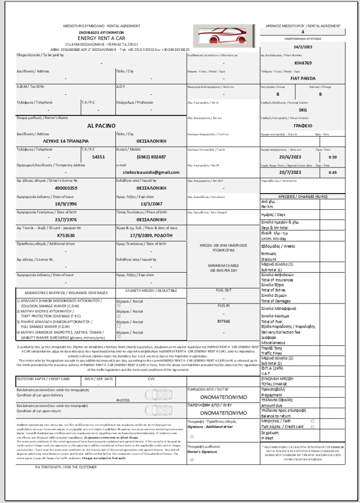 Τα παραπάνω στοιχεία μεταφέρονται αυτόματα όπου χρειάζονται κατά την καταχώρηση της κράτησης, την έκδοση του συμβολαίου ή της προσφοράς.